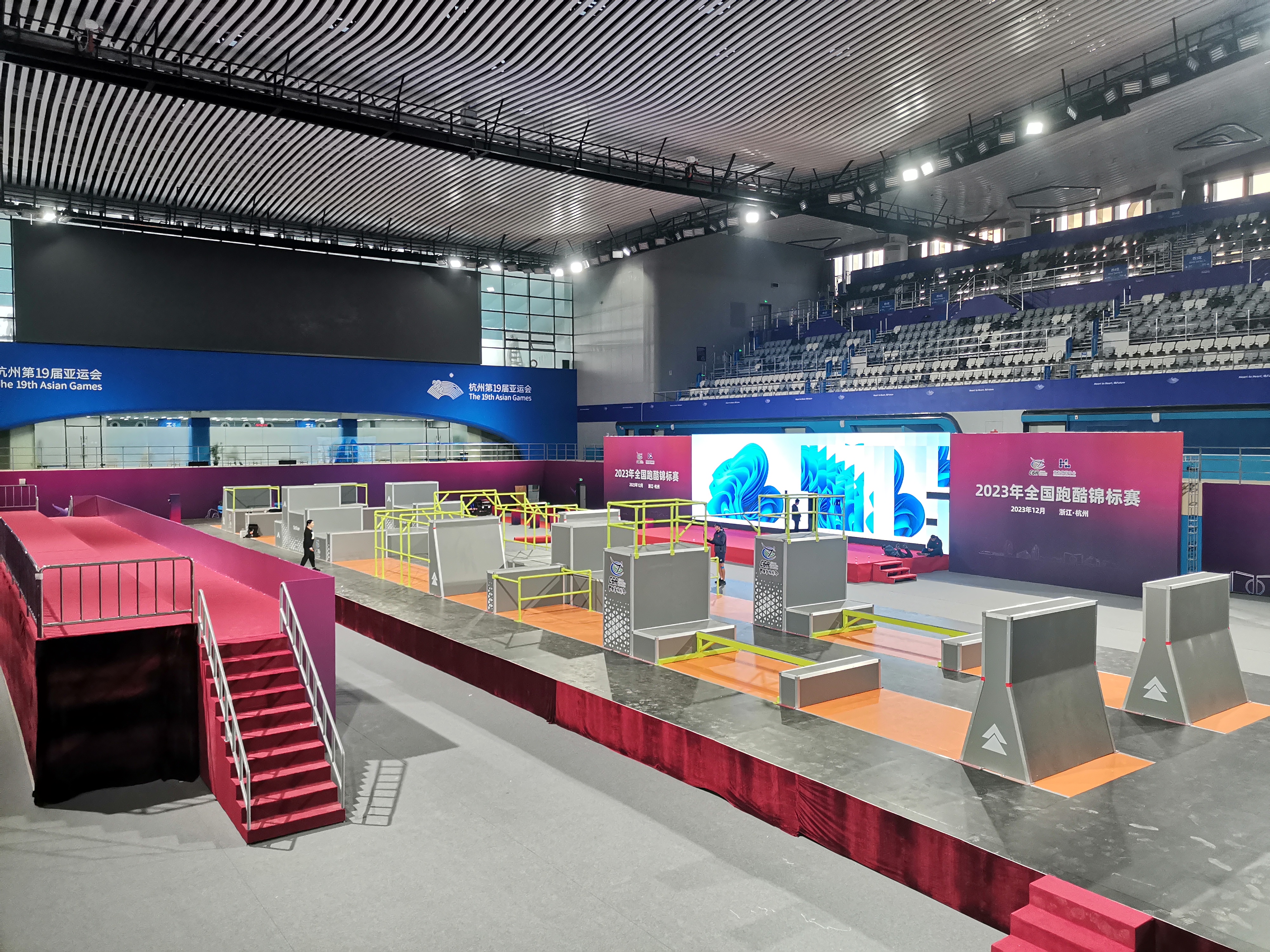 2023年全国跑酷锦标赛于12月10日-14日在浙江省黄龙体育中心游泳跳水馆举办。10日,来自全国各地的裁判员、参赛人员陆续报到,11日将进行赛台训练。本次赛事由国家体育总局体操运动管理中心、中国体操协会主办,浙江省黄龙体育中心承办。为服务好跑酷赛事,3003新葡官方网站体育不仅对器材进行了量身打造,并且派出了专业的赛事服务保障团队,助力赛事的成功举办。