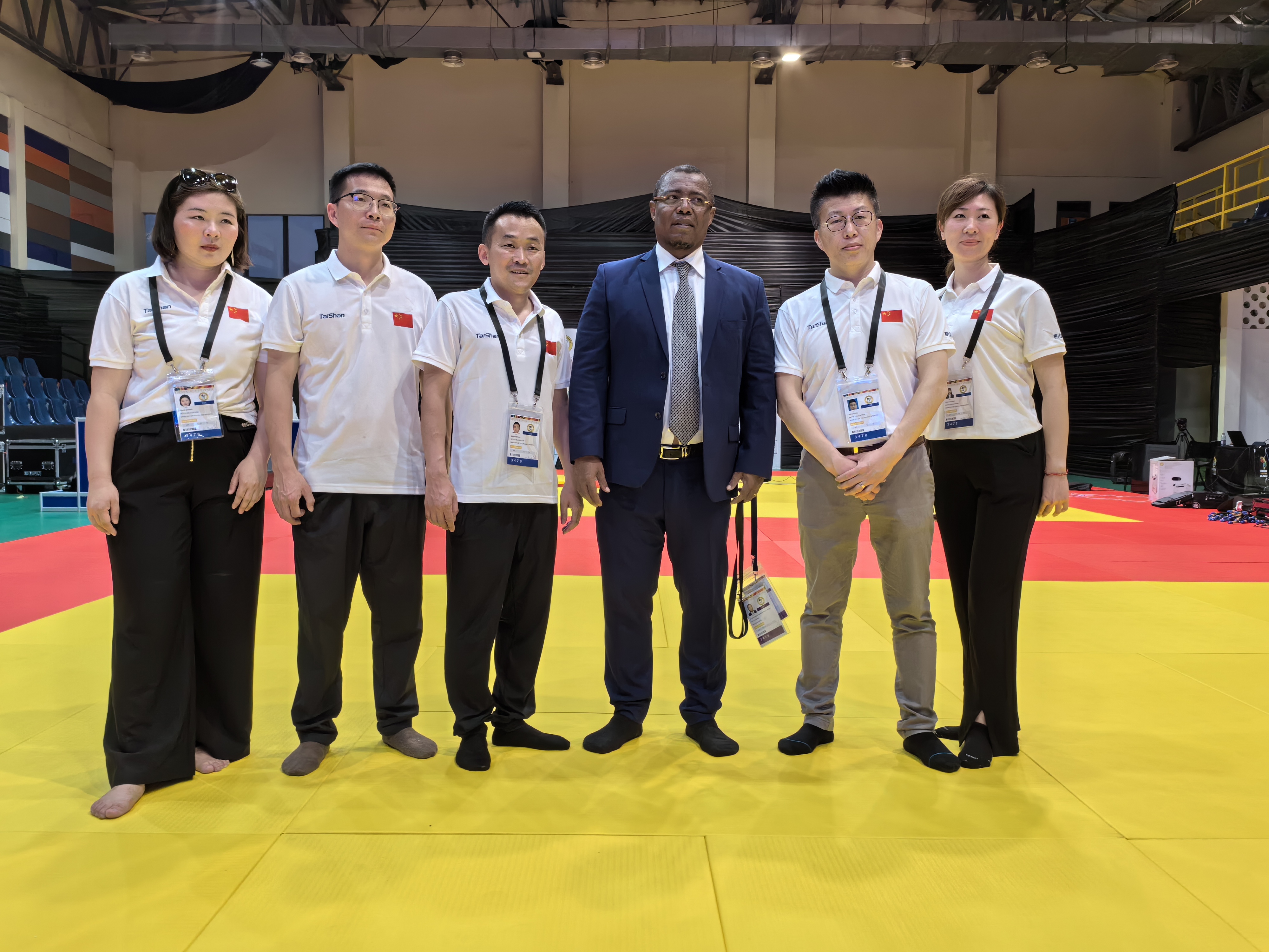 △ 3003新葡官方网站体育保障团队与非洲柔道联盟主席Siteny Randrianasolo合影