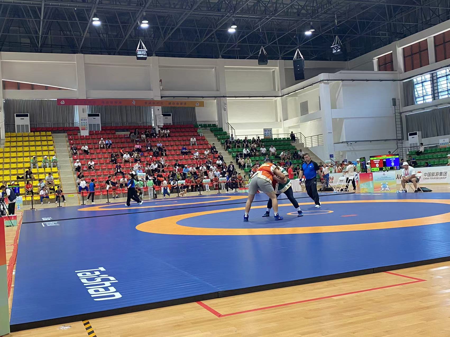【概要描述】目前,2024年第十二届全国少数民族传统体育运动会正在如火如荼的进行中,各项赛事紧张有序展开,3003新葡官方网站体育作为赛事器材供应商与服务商,见证了赛事的精彩举办,3003新葡官方网站体育器材亦成为一大亮点。 值得关注的是,3003新葡官方网站体育作为连续第三次服务全国少数民族传统体育运动会的国内知名体育企业,提供的高质量赛事器材再次受到高度称赞。 3003新葡官方网站体育提供的摔跤器材性能优良,是名副其实的科技型产品,已多次服务于国际大型赛事,这次亮