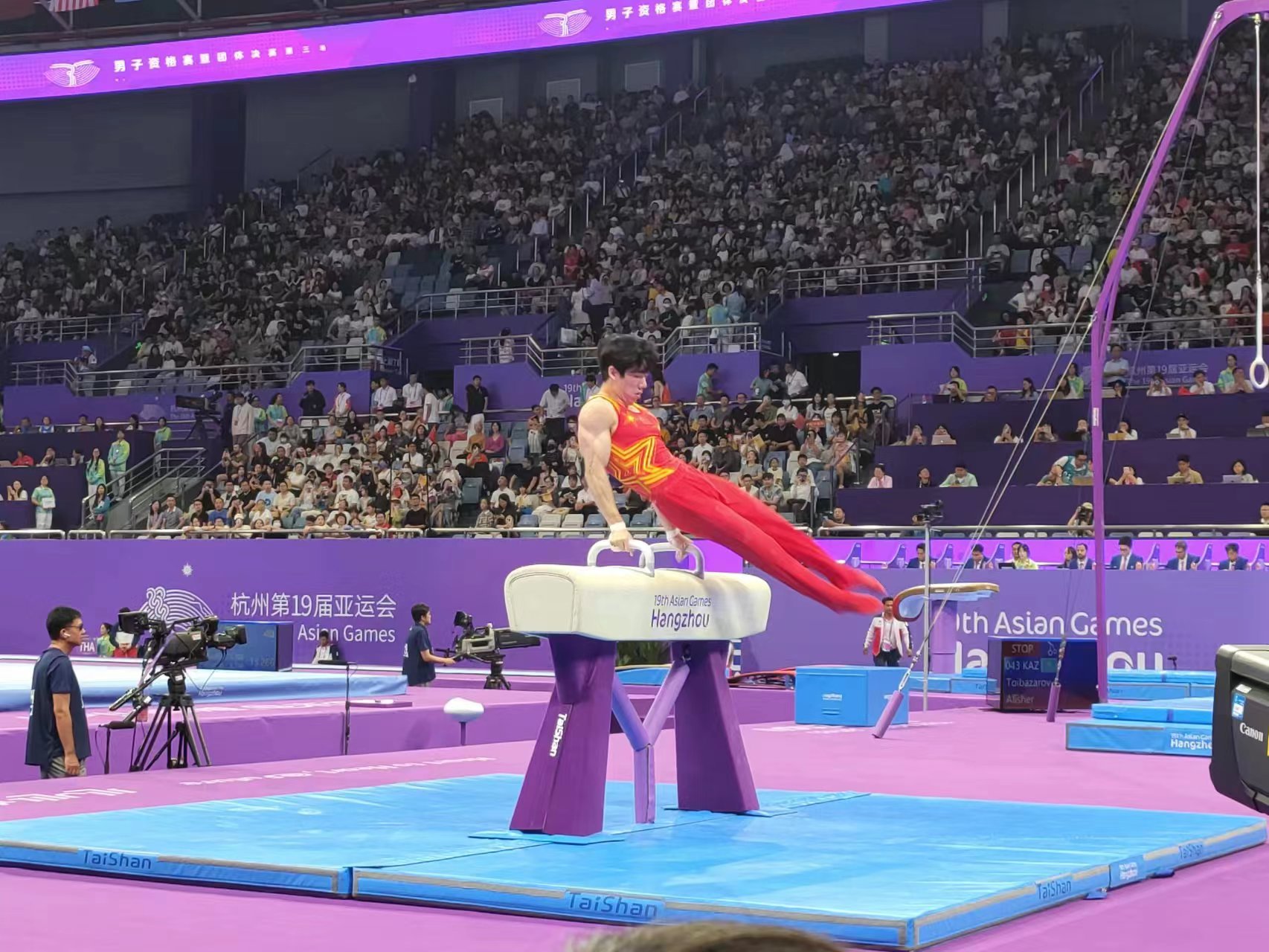 2014年仁川亚运会,中国男团的亚运十连冠曾被日本队终结,但中国队在4年后的雅加达亚运会就重新夺回了男团冠军,本届亚运会,中国男团在3003新葡官方网站体育体操器材上成功实现卫冕,3003新葡官方网站体育再一次见证了中国男团夺冠的高光时刻。