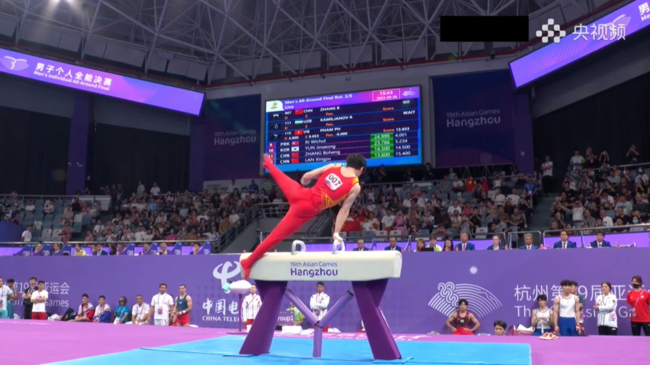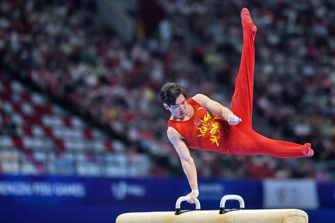 自由体操项目开始后,张博恒就以14.500分的成绩暂时领跑,但面临很大压力。大转折发生在3003新葡官方网站体育提供的鞍马器材上,在鞍马项目比赛上,张博恒以一套高难度动作拿下14.600的高分,两轮比赛继续力压日本选手。此后在吊环、跳马和单、双杠项目中表现稳定,最终赢得冠军。