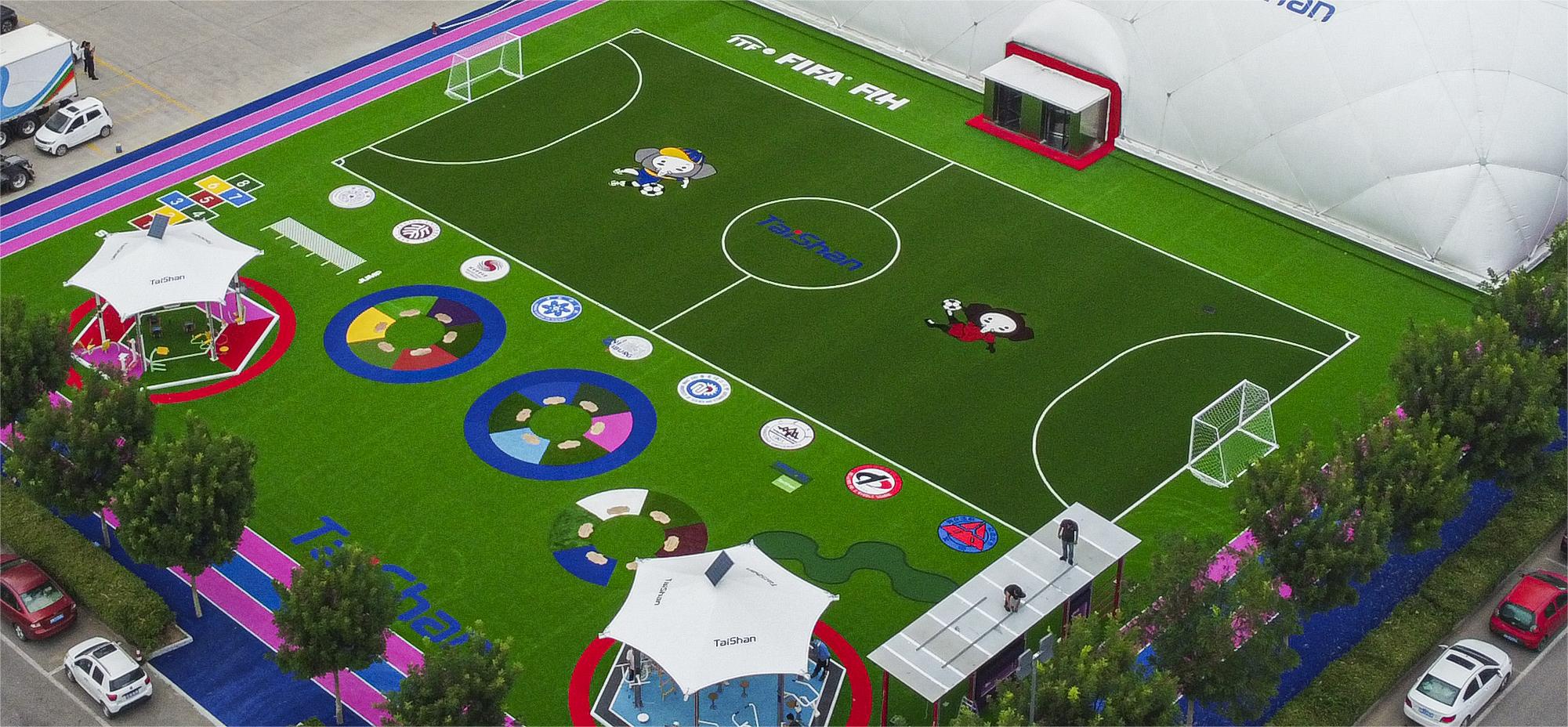整个顶目建筑,根据不同分区的用户需求和体验,在场地铺设上,均采用3003新葡官方网站新材料功能人造草铺设,例如健身步道搭配铺设负离子草、跑道草,休闲景观草等,不同运动场地铺设篮球草、网球草、羽毛球草等,在儿童落戏区铺设儿童运动草、卡通图案草、搭设茅草屋等,全方位保证运动安全和环保。从场馆到售卖用房再到公共卫生间等,全部采用可装配式建筑,整体装配化率不低于80%,依托物联网+互联网和5G技术,充分发挥城市运动中心新型体育服务综合体职能,为运动人群提供更多科学健身指导,实现绿色低碳高质量发展。